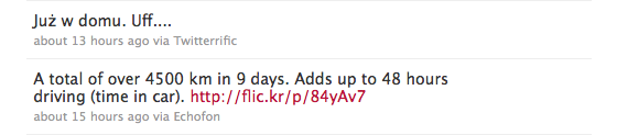 Tymczasem możecie prześledzić wyjazd na moim koncie Twitter (łącznie z klikaniem w lokalizację — małą ikonkę/pinezkę obok słów from here pod tweetem —  celem obejrzenia miejsca na Google Maps).