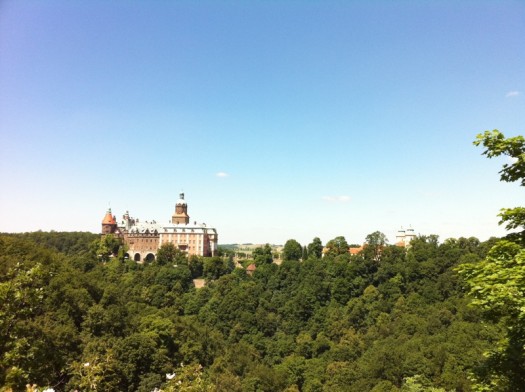 Typowy landschaft zamku Książ pod Wałbrzychem — jak się jeszcze popracuje nad nim w chociażby iPhoto, to można uzyskać jeszcze lepsze efekty. Słońce niestety bardzo ostre — wybrałem nieodpowiednią godzinę, ale było to poza moją kontrolą.