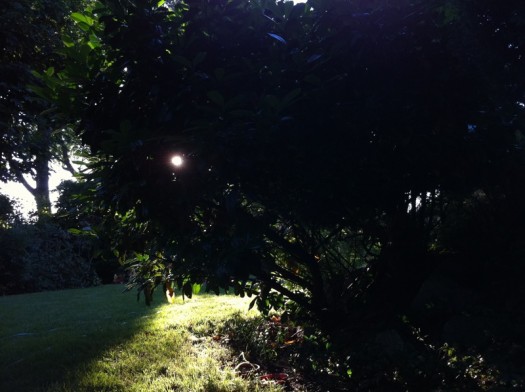Zdjęcie prosto pod słońce przedzierające się przez gałęzie bliżej mi nieznanego krzaka (pod którym mieszka Pan Jeż i jego rodzinka — srsly!). Jak widać, całkiem nieźle radzi sobie z flarowaniem …