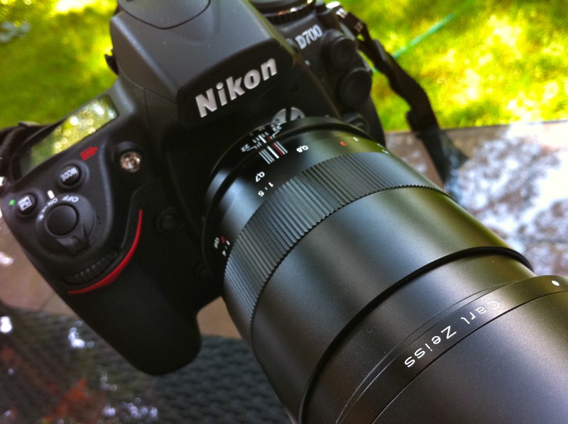 Sprzęt, którym robiłem zdjęcia iPhone 4 w poprzednim wpisie — Nikon D700 + Zeiss 100/2 Makro-Planar T*. Patrząc na większe zdjęcie widać nawet nutę rozmytej głębi ostrości. Punkt złapany na napisie Carl Zeiss dzięki funkcji Tap to Focus.