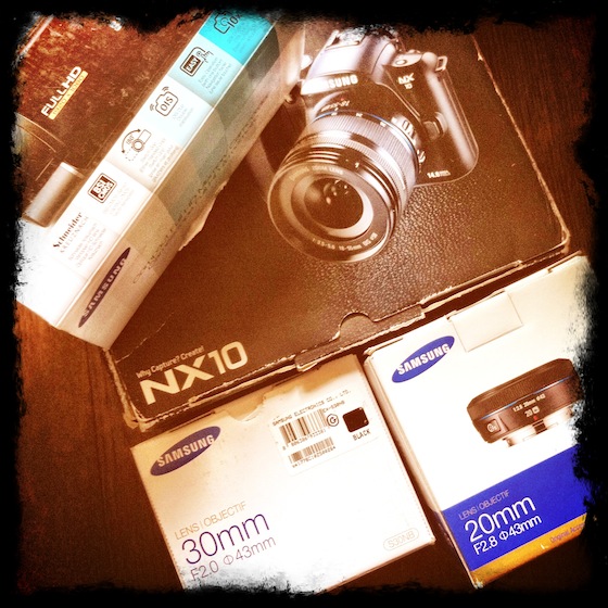 Samsung Polska niedawno pojawił się dosyć głośno na Twitterze i rozdawał mnóstwo różnych ciekawych rzeczy. Udało załapać się na kilka ciekawych zabawek, z którymi dotychczas nie miałem żadnej styczności. Zresztą świetnie się złożyło, bo dopiero co oddałem Fuji X100, a NX10 ma zbliżoną filozofię bez otoczki retro — matryca APS-C o rozdzielczości 15 megapikseli i dwa ciekawe obiektywy typu pancake: 20 i 30mm (odpowiednio 35 i 45mm po przeliczeniu na pełną klatkę).