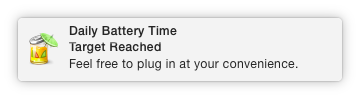 Po zakończeniu powyższego cyklu program na bieżąco informuje nas o stanie naszej baterii oraz sugeruje ile powinniśmy w ciągu dnia przepracować odłączani od ładowarki. W moim przypadku stale i niezmiennie jest to przynajmniej 15 minut dziennie na baterii, a poza tym czasem dowolnie, zgodnie z potrzebami. Maciek, jak już wspominałem, otrzymuje inne porady co do swojego komputera i wygląda na to, po rozmowach z paroma innymi osobami, które korzystają z tej aplikacji, że program rzeczywiście indywidualnie dobiera modus operandi dla każdego.
